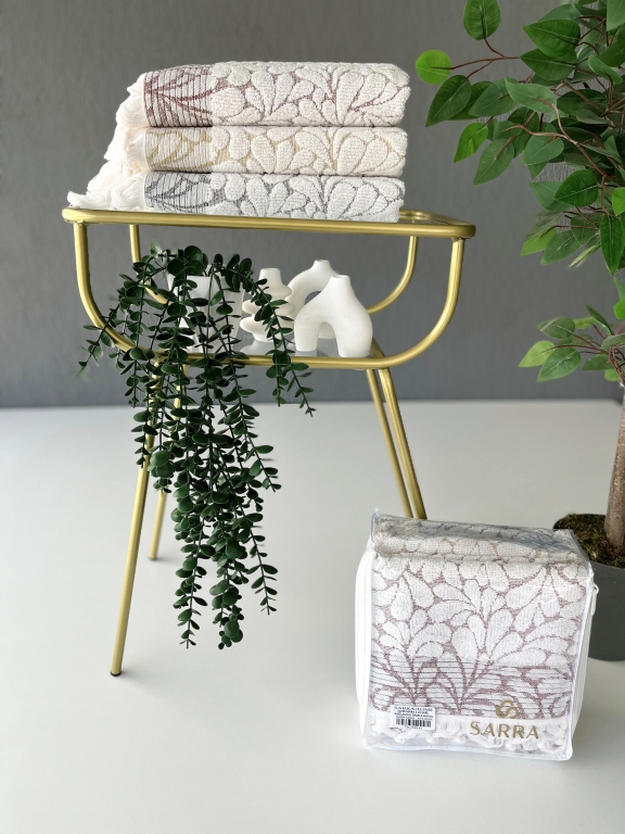 50x90 SARRA 3'LÜ SARE BAĞLAMALI DAMLA HAVLU